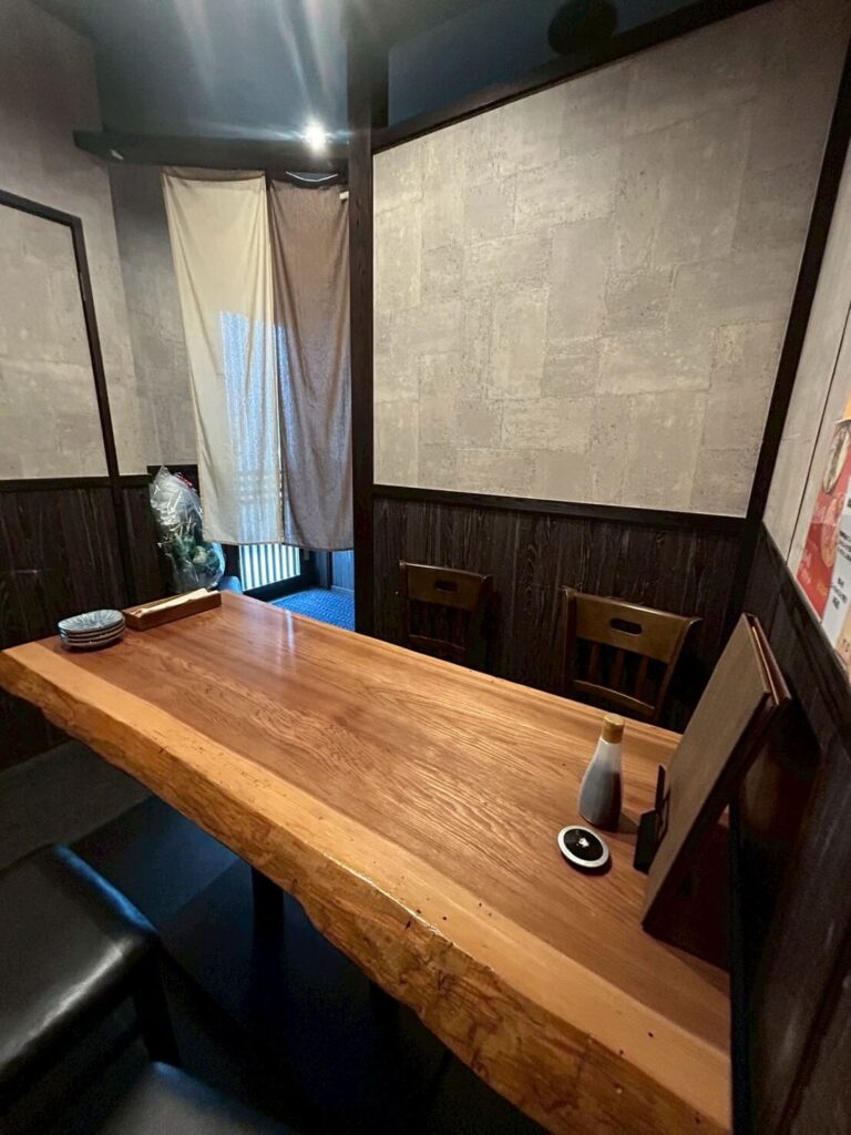 1人時間を愉しむカウンター席から、周囲を気にせず過ごせる個室のテーブル席、足を伸ばしてくつろげる掘り炬燵席があり、少人数の語らいから大人数での宴会までシーンに合わせた最適な空間をご用意しております。
